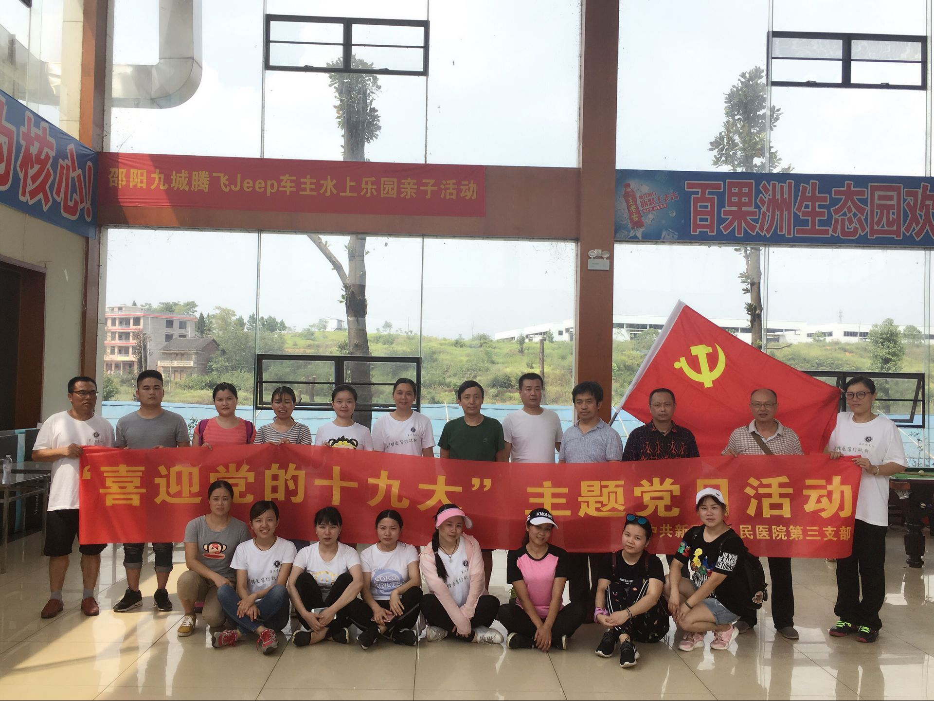 2017年9月24日,中共新邵县人民医院第三支部委员会组织开展了“喜迎十九大”主题党日系列活动。活动内容包括学习习总书记讲话精神,学习党章《党的纪律》,重温入党誓词,并进行了拓展活动。院总支委员、副院长朱克明以普通党员身份参加了活动。