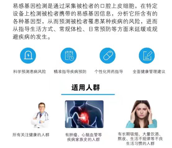 基因检测是最早的预警,通过检测易感基因,能够及早了解自己的基因信息,并根据检测结果采取针对性的预防措施(改变生活方式、饮食习惯,避免有害因素,定期检查等),以便降低疾病的发生风险!
