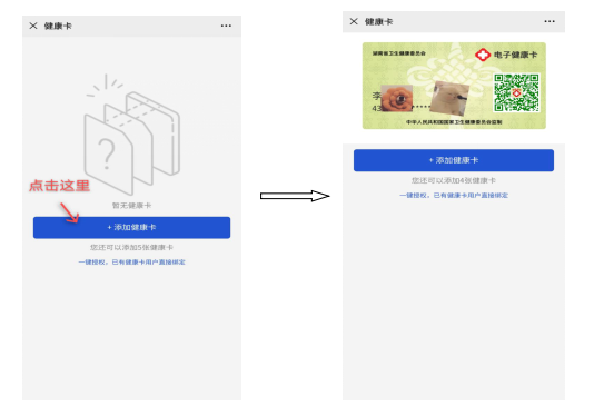 备注:在微信公众号上预约挂号,需提前绑定健康卡。如您还没有绑定健康卡,请参照以下流程进行预约挂号:
