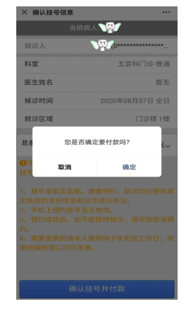 5、点击确定付款,缴费成功后,系统自动生成手机挂号单,就诊时直接出示该凭证即可(如需挂号单报销,请看诊当日补打发票)。