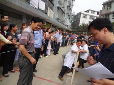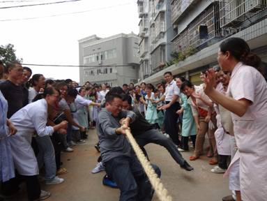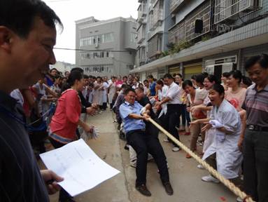 为加强培养职工的团队合作意识,增强医院凝聚力,倡导精神文明生活,锻炼健康身体,2012年9月26日,我院组织在新家属房前举行了一场非常有意义的拔河比赛。本次比赛绝大部分职工积极踊跃的参与。