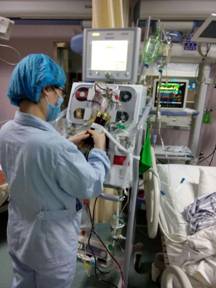 护士正在为急性有机磷农药中毒患者进行血液灌流治疗