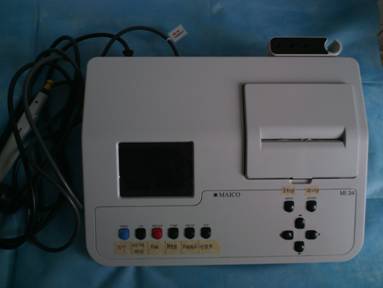 2015年3月底,我科引进了MAICO公司生产的声阻抗仪听力诊断设备。声阻抗测听仪是一种客观的测听设备,它以定量测试声音在中耳系统传递过程中所体现的以摩擦力、劲度为主要因素的声阻抗为目的,为临床诊断中耳系统疾病提供依据。声阻抗测试主要有:“静态声顺值”、“鼓室曲线”、“声反射”、“声衰减”等指标。它们分别体现了鼓膜、锥骨、砧骨、镫骨、中耳肌这一声传导链的功能状况,并从一定程度上提示了蜗后病变的可能性。