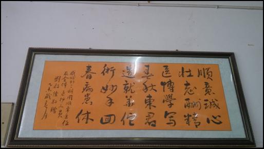 匾上雄浑苍劲的毛笔行书是刘老亲撰的一首藏头诗——顺意诚心壮志酬,精医博学写春秋。东君造就华佗术,妙手回春病患休。这首诗恰如其分地表达了周顺东科主任以及我们全体医务人员常年以来的不懈追求——精医博学,待人必诚。正因为有周顺东科主任这样博学严谨、待病患如亲友的学科带头人领导,我们科室的学术氛围非常浓厚,医患关系极为融洽,上述故事屡见不鲜,为新世纪新形势下健康有序的医患关系之构建树立了一个良好的榜样。(外二科:钟志斌)