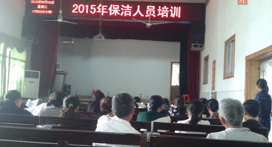2015年5月6日下午4:00,我院在门诊四楼大会议室举办保洁人员医院感染知识培训讲座。本次培训由医院感染管理科主持并进行知识讲解。医院共有保洁人员28人,参训人员24人,参训率85.71%。