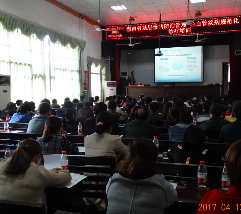 4月13日下午2点30,由中国医师协会主办、新邵县医学会承办的“湖南省基层慢病防治管理--心血管疾病规范化诊疗培训”大型公益活动在新邵县人民医院门诊四楼大会议室举行。邵阳市中心医院心内科主任、心导管室主任欧阳泽伟,邵阳市第一人民医院心血管内科主任吕春美,我院心血管内科主任刘任飞及各科室业务骨干、新邵县各乡镇卫生院院长等150余人参加会议。