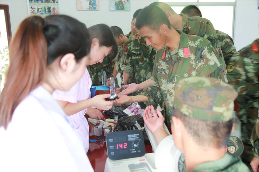 此次慰问活动,双方紧紧围绕双拥共建活动主题,充分利用现有资源,将“健康知识进部队、国防教育在营地”贯穿于整个慰问活动。慰问组给武警邵阳支队一大队官兵送上价值2000余元的水果表示节日的慰问。座谈会上颜主席代表医院向部队官兵致以节日的问候,汇报了医院近期各项工作取得的成绩以及未来规划.同时,感谢部队一直以来给予医院在发展建设中的支持和帮助。座谈会后,慰问组对官兵开展了测血糖、量血压、心电图的检测及健康咨询等内容的义诊活动。医护人员全身心投入到义诊当中,对每一名官兵耐心交流,细致入微地为他们进行义诊和生活方面的指导,受到了官兵们的欢迎。慰问组一行在营区参观了部队的文化建设,荣誉室、学习室等,整洁有序的环境让医护人员感受到官兵们铁一般的纪律,接受了一次深刻的国防教育,进一步提升了医护人员的国防意识,增强了国防观念。