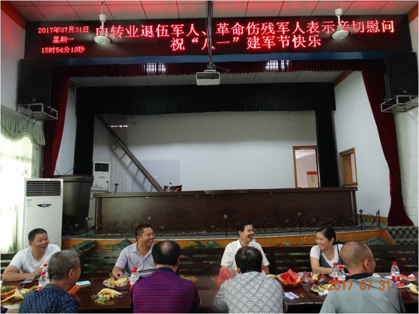 7月31日下午,医院党总支书记唐孝志、工会主席颜运莲、工会副主席艾跃成等院领导召集全院10余名转业退伍军人、革命伤残军人举行座谈慰问活动。