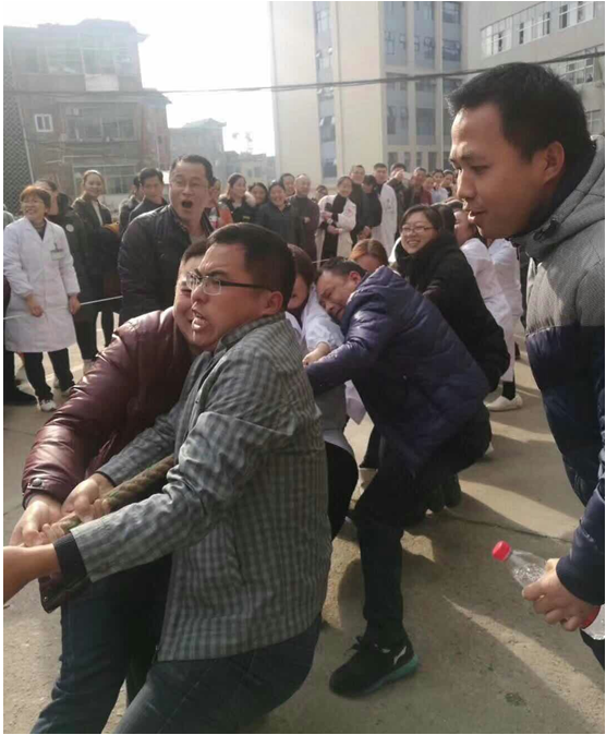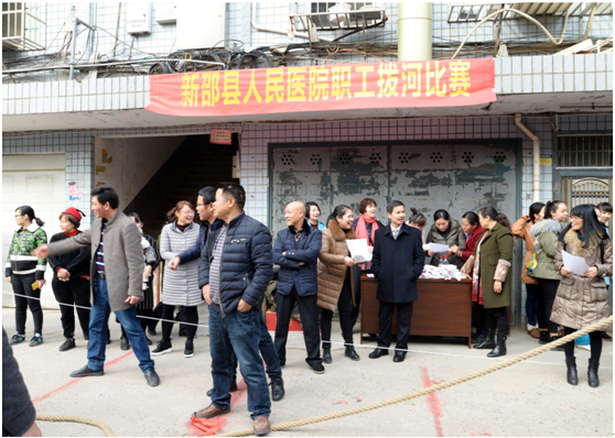 随着一声哨响,新邵县人民医院家属区前响起了震耳欲聋的加油声和呐喊声,2017年新邵县人民医院职工拔河比赛正式“开拔”,为丰富职工的文化生活,增强团队意识和集体荣誉感,展现医院职工积极向上的精神风貌,12月22日下午,由医院工会组织的职工系列文体活动——拔河比赛,在医院家属区前进行了激烈地角逐。