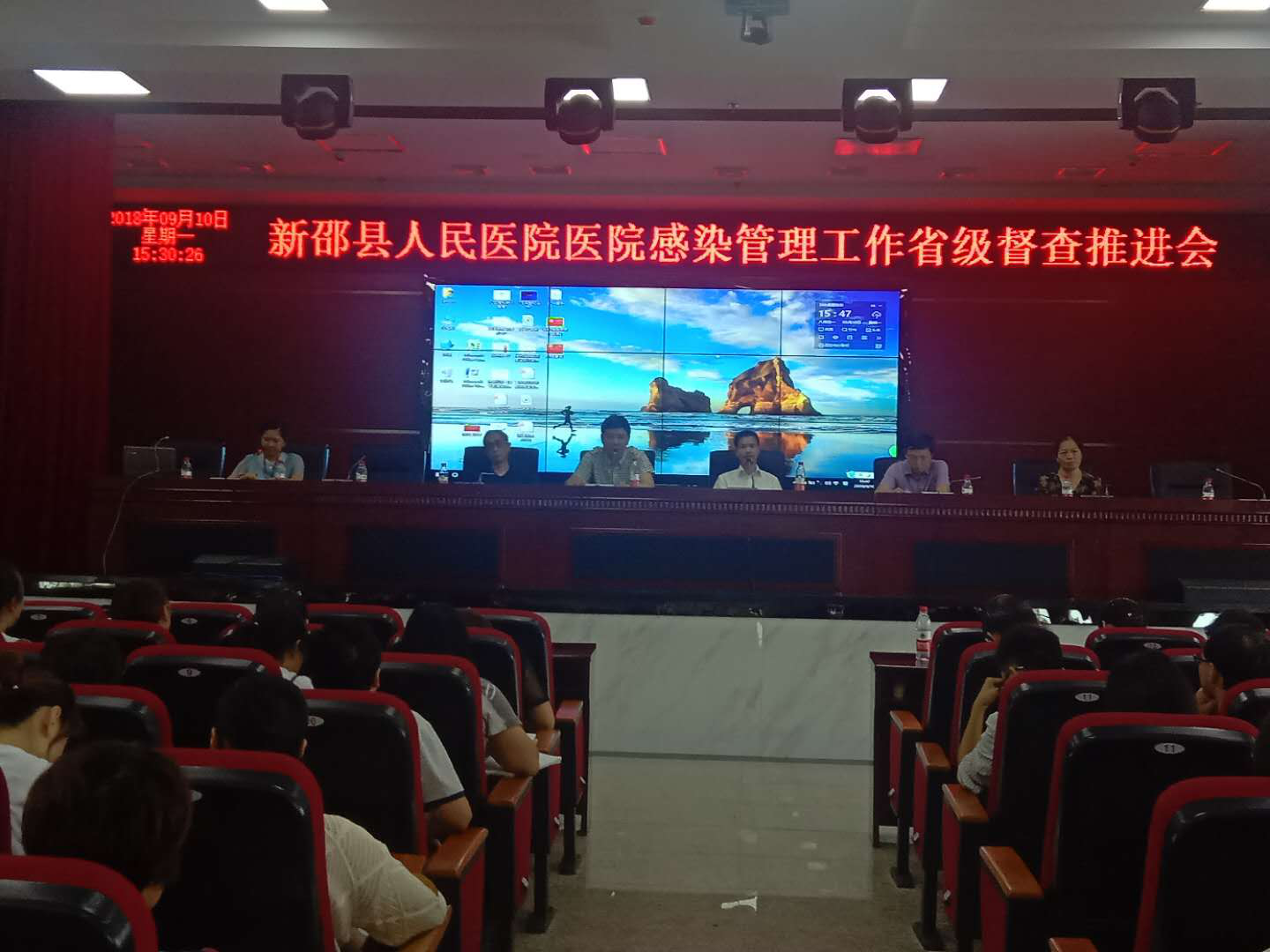 新邵县人民医院于2018年9月10日下午在新住院大楼17楼大会议室召开了医院感染管理工作省级督查推进会,参加人员有医院领导、各科室主任、护士长和监控员等176人,会议由院长彭宏主持。