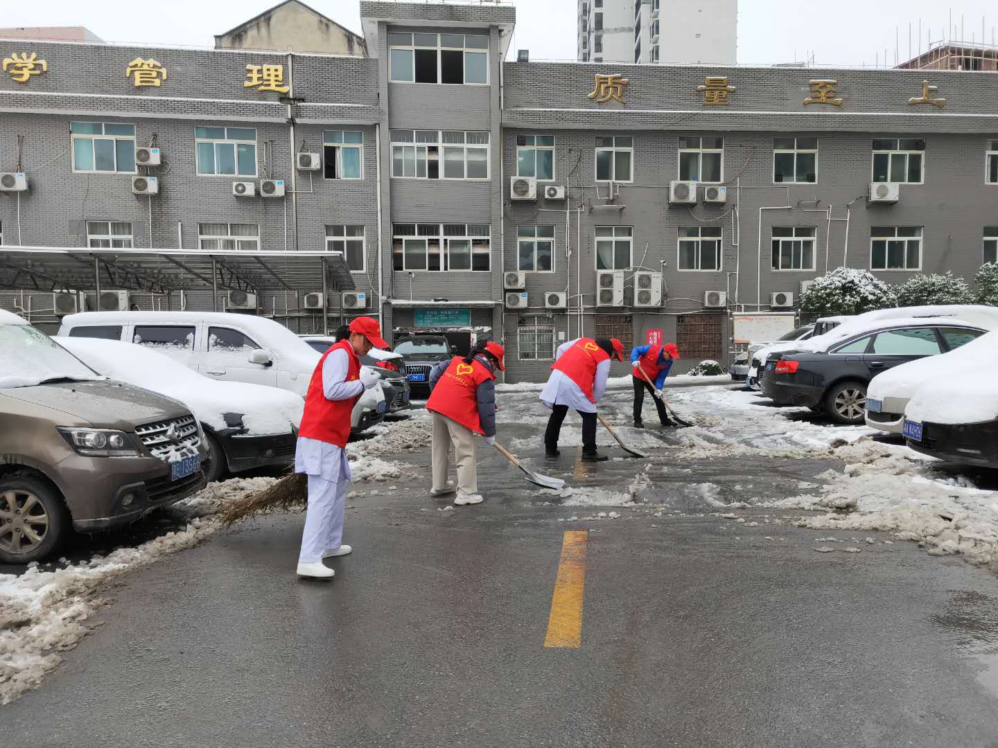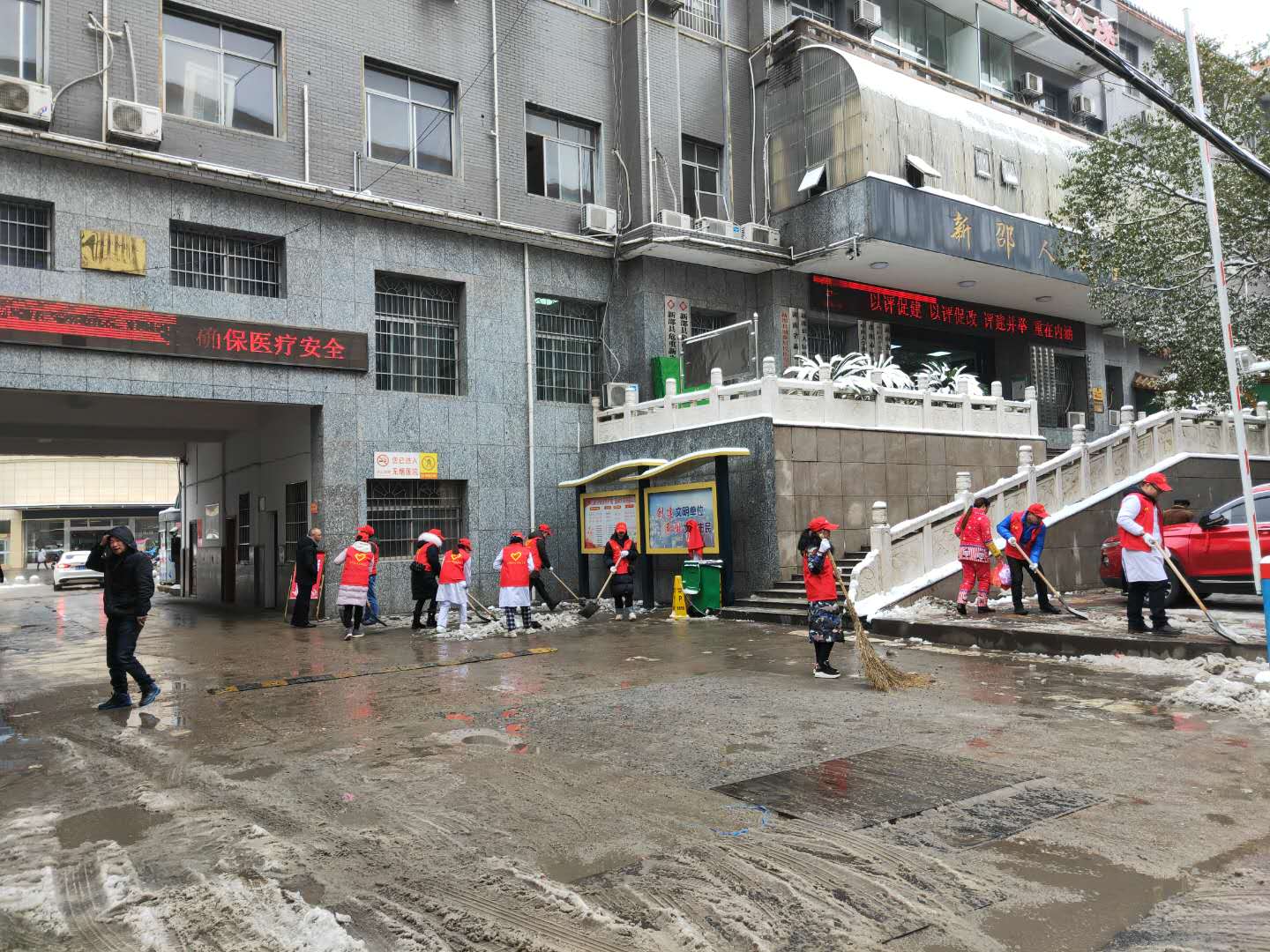 新邵县人民医院青年志愿者扫雪除冰确保生命通道畅通