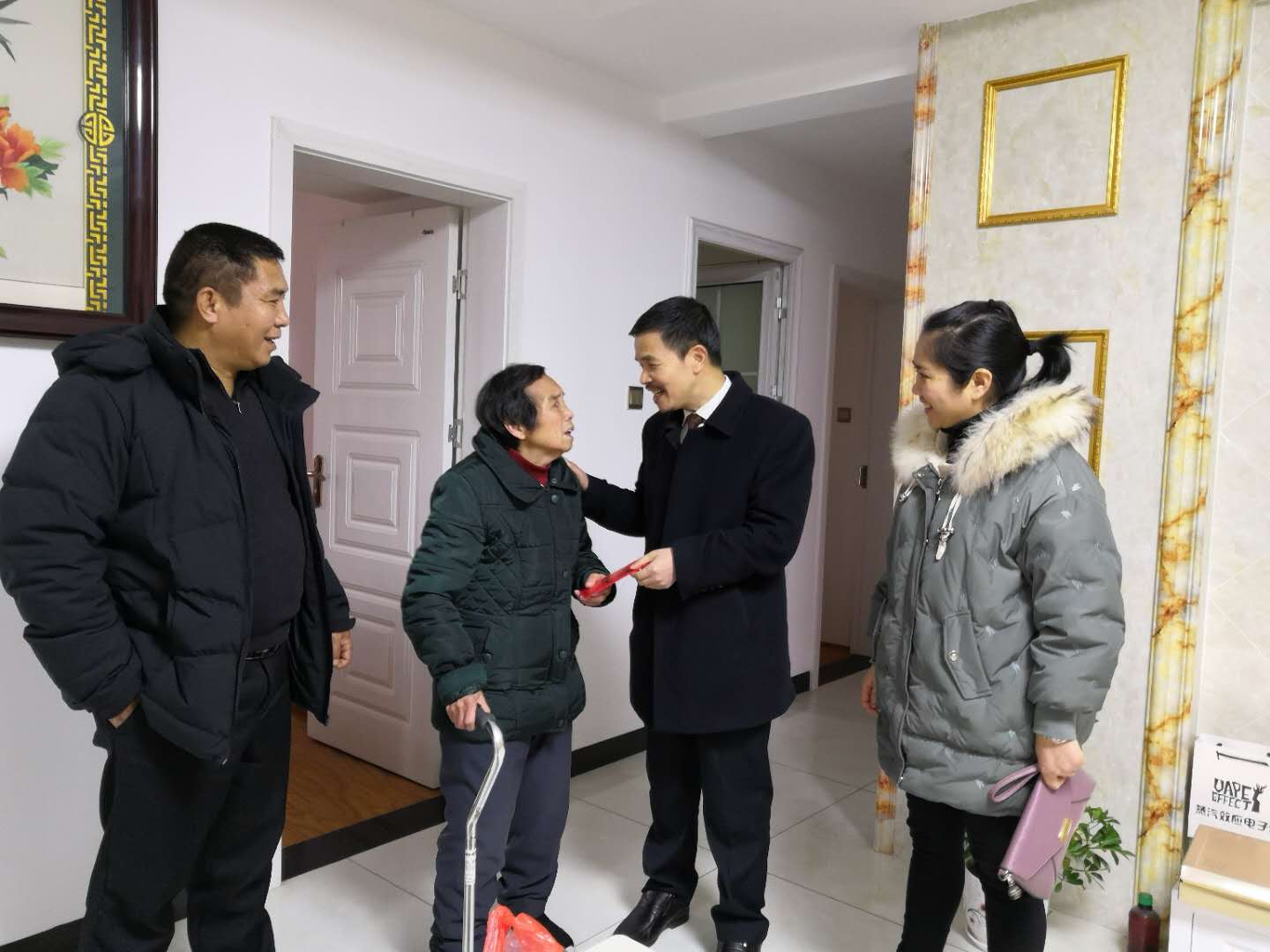 春节将至,我院院长彭宏、党总支书记唐孝志在工会主席颜运莲、副主席艾跃成的陪同下,带着全院职工浓浓的关怀之情,对医院20余名困难职工进行了走访慰问。