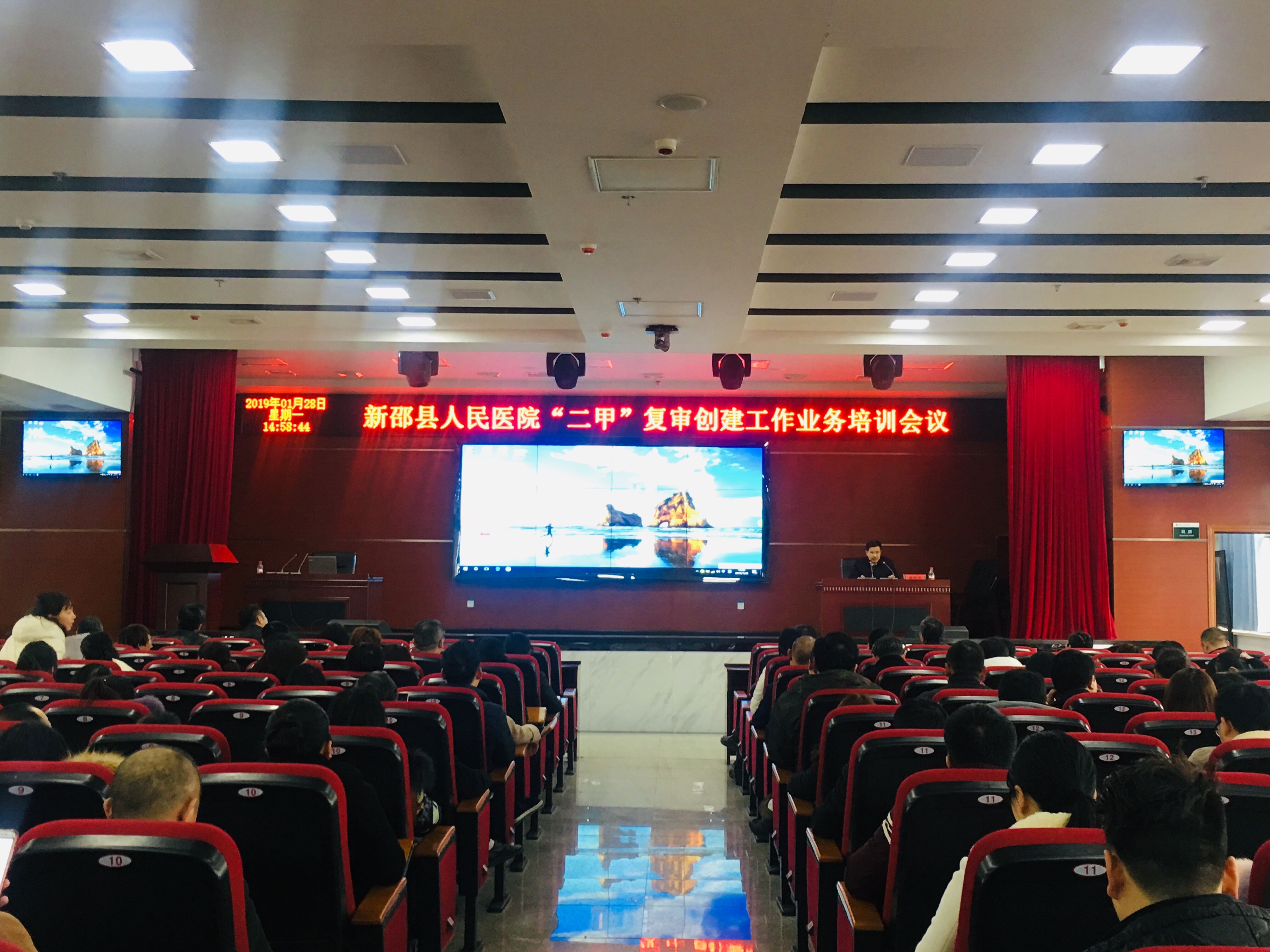 为进一步推进我院二甲复审工作进度, 1月28日下午,我院特邀邵阳学院第一附属医院专家组在第一住院大楼17楼大会议室举办了“二甲”复审创建工作业务培训。会议由院党总支书记唐孝志主持,院领导、全体中层干部及科室内审员150余人参加了此次培训。