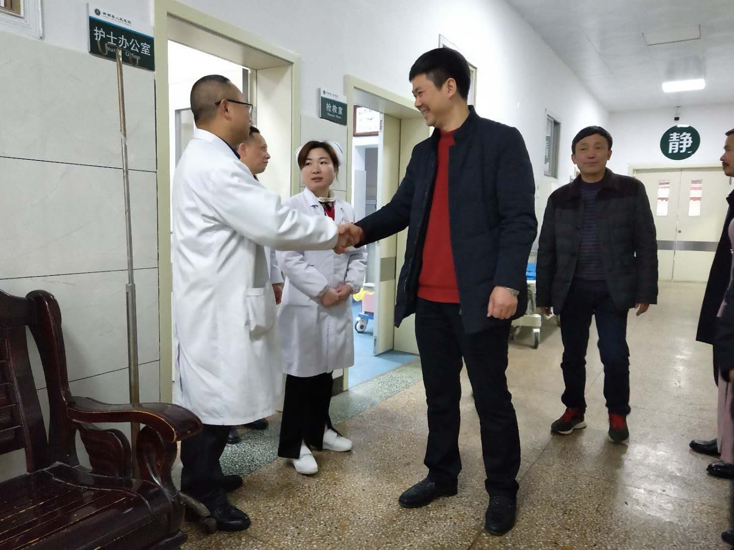 2月5日(大年初一)上午,医院院长彭宏、总支书记唐孝志等院领导率各职能部门负责同志深入临床、医技、门急诊一线及各病房,看望慰问春节期间仍坚守在工作岗位的值班人员及住院病人,向他们致以节日的问候和新春美好的祝福。