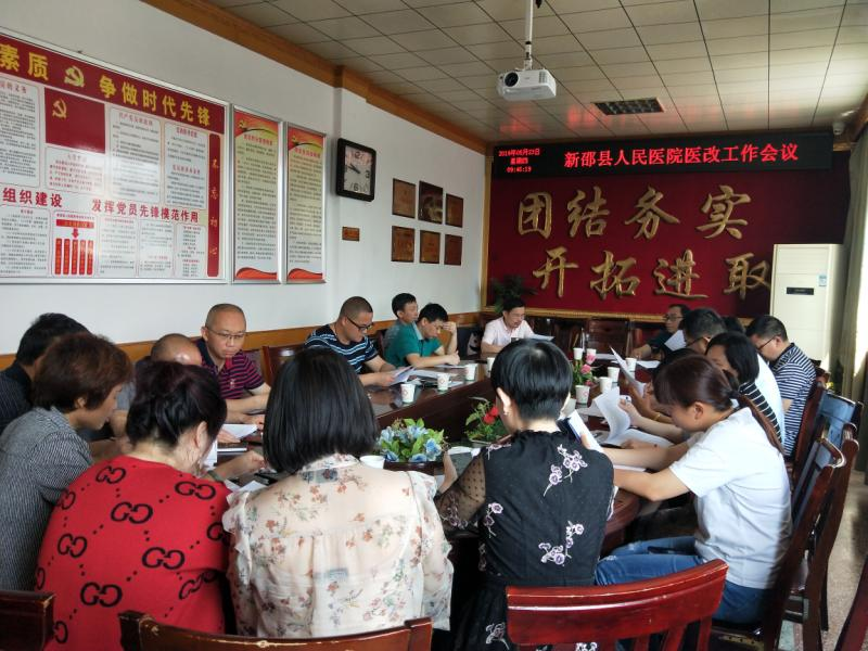会上,院总支书记唐孝志宣读了《关于调整新邵县人民医院医改领导小组的通知》,解读了2019年全国、湖南省医疗管理工作会议以及2019年1-4月有关医疗管理工作文件精神,并传达了2019年5月17日全国医改工作电视电话会议精神。