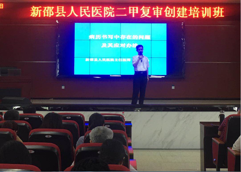 为规范病历书写,提高病案质量,6月5日下午,我院在医院第一住院大楼17楼大会议室举办了病历书写专题讲座。本次培训由唐孝志主任医师主讲,内容为《病历书写中存在的问题及其应对方法》。医院二甲复审创建领导小组成员及各临床科室质控员、非值班的临床医师共140余人参加培训。