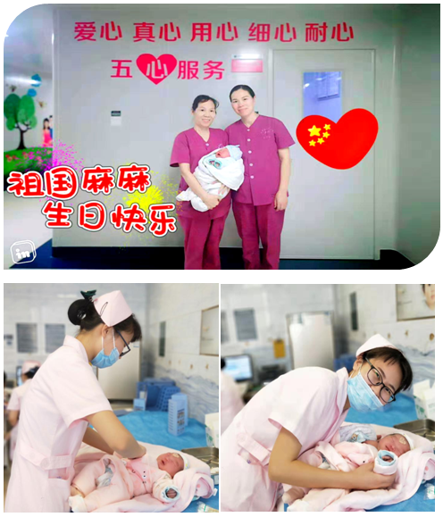 “也许是被举国欢庆的气氛所感染,今天早上已经有三个小宝宝赶在这个重要的日子来到世界,与祖国一起过生日。”刚下夜班助产士小刘兴奋地说,“这是今天第一个出生的“国庆宝宝”。看着他们灿烂的笑容,嘹亮的哭声,我就觉得心里特别开心。”