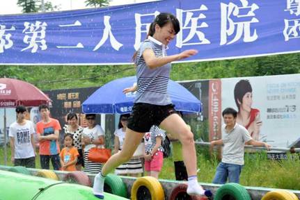2015年7月18日上午8时,邵阳市总工会、邵阳市广播电视台联合主办的“快乐大冲关,挑战我最棒”大型户外拓展活动新邵县人民医院专场拉开序幕。医院组织60余名医务人员参加挑战,院领导、工会委员、观众百余人现场观看。