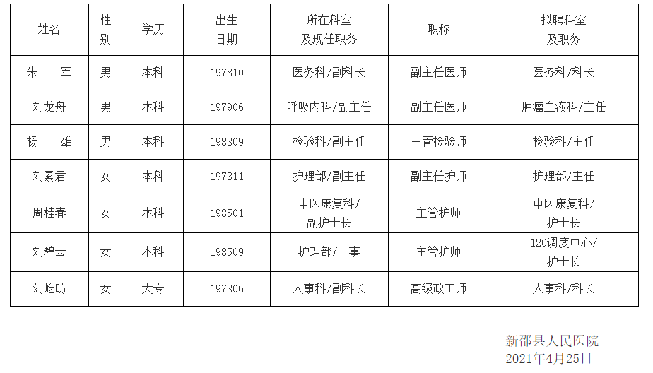 经院务会研究,拟提拔朱军等7位同志,现面向社会公示,公示期为五个工作日(2021年4月25日至4月29日)。欢迎社会各界予以监督,举报电话: