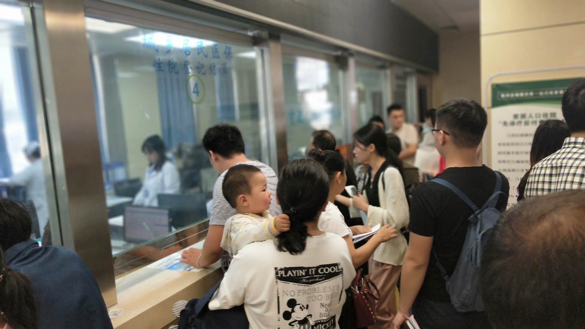 记者们实地参观医院“一站式结算”窗口