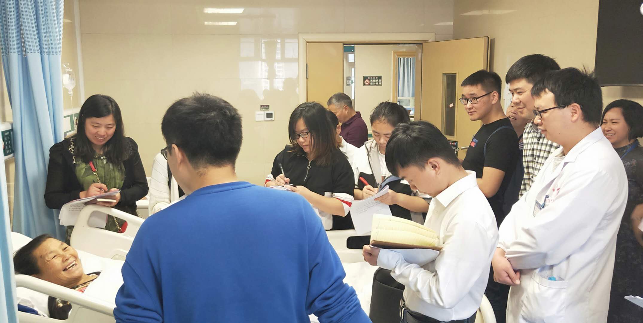 记者们深入病区了解贫困住院患者对健康扶贫政策的感受