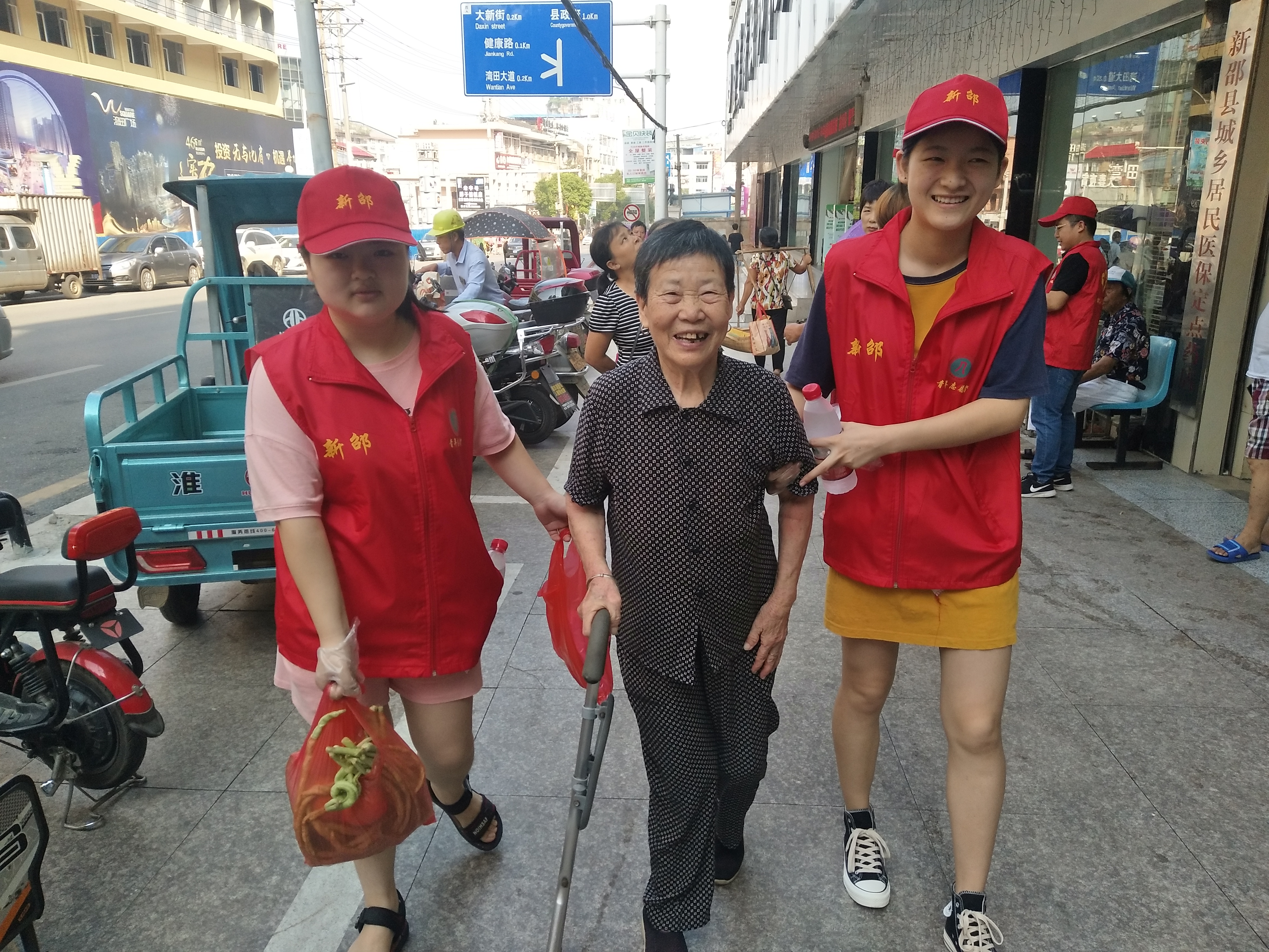 志愿者主动帮助老人提重物,搀扶老人过马路